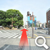 36号線を「熊本市街」方面へ走り、産業道路に入る。新屋敷1丁目交差点を右折後約2分で通町筋近辺へ到着。