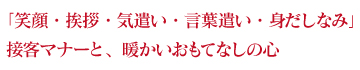 「いいお店」というのは料理の味だけで決まるものではありません。スタッフの「お客様を温かくおもてなす心」も大切です。